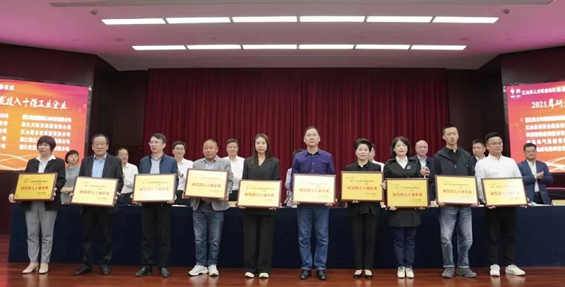我司榮獲江山市2021年研發投入十強工業企業榮譽稱號