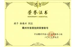 喜訊:我司員工徐德興獲“衢州市首席技師榮譽稱號”