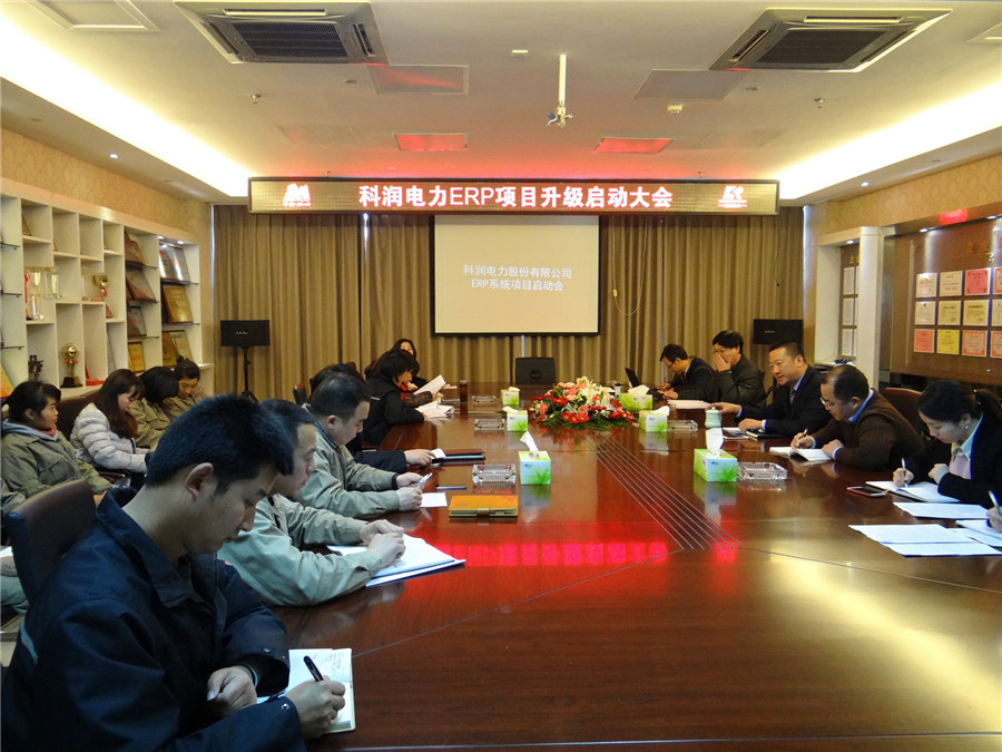 根據(jù)董事長的指示精神,為貫徹落實公司信息化戰(zhàn)略全新部署,進一步快速提升企業(yè)的現(xiàn)代化管理水平,適應新時期企業(yè)管理方式的變革,順應資本市場運作的發(fā)展趨勢,3月16日下午,我公司與西安啟源軟件技術(shù)有限責任公司項目負責人田如意在209會議室共同召開了“科潤電力ERP系統(tǒng)升級啟動大會”??偨?jīng)理章群峰、公司項目領(lǐng)導小組成員近30人參加了會議。