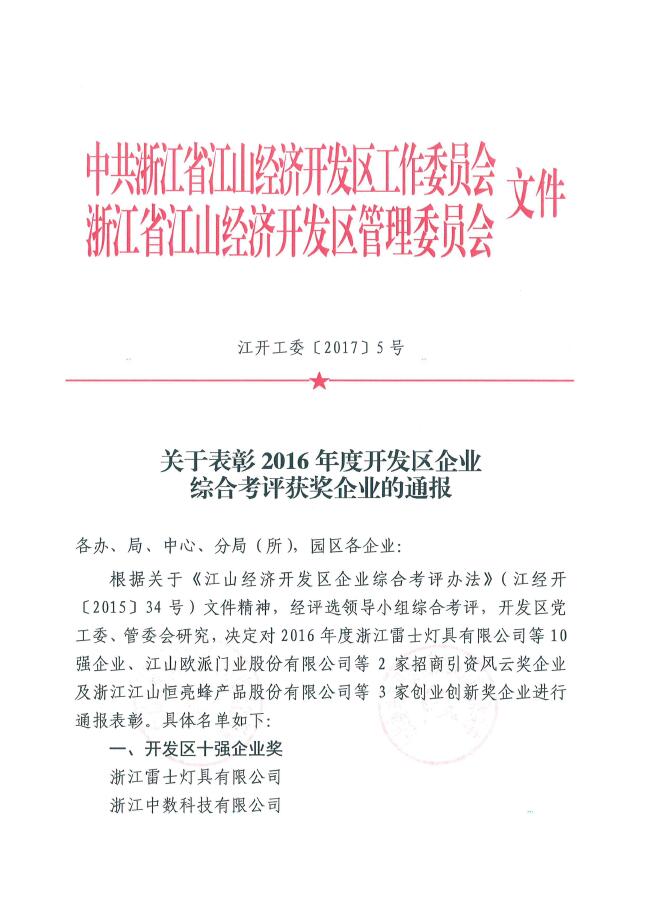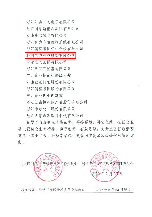 喜訊:恭賀科潤榮獲江山市開發區十強企業獎