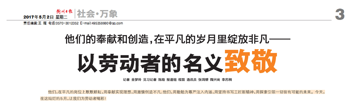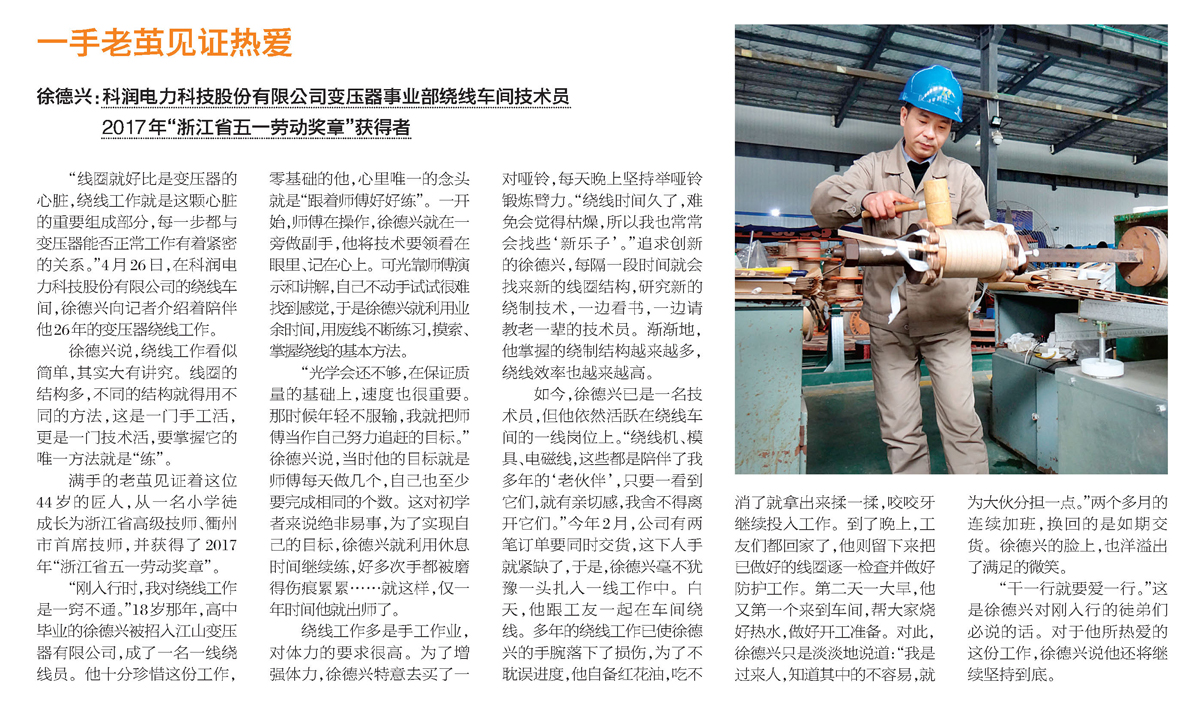 一手老繭見證熱愛(衢州日報(bào)采訪我司 2017年“浙江省五一勞動獎?wù)隆鲍@得者徐德興)