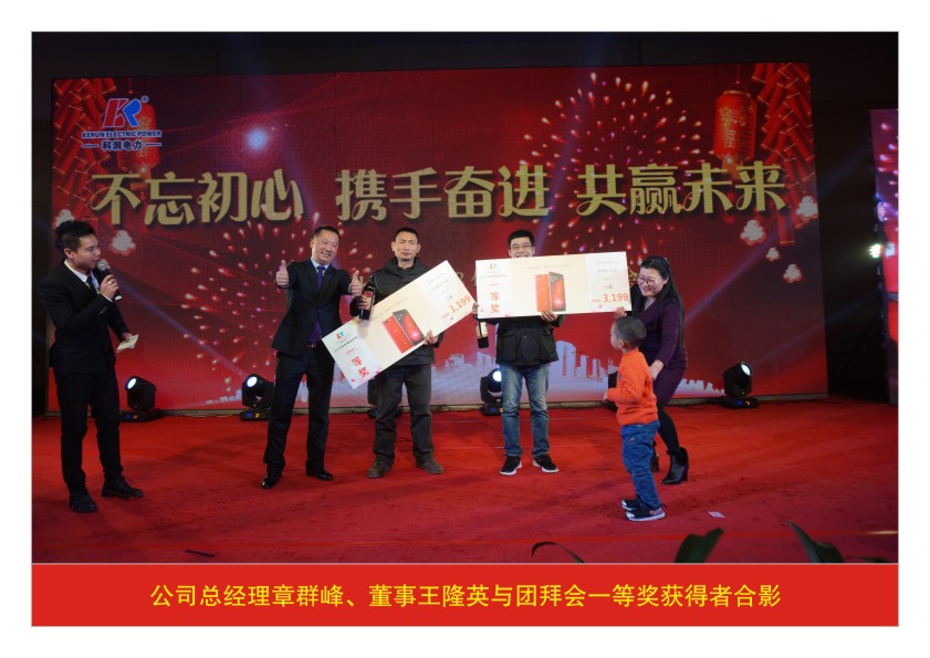 2018年2月9日,公司隆重舉辦了“不忘初心 攜手奮進(jìn) 共贏未來”科潤電力2018年新春團拜會,參會嘉賓、公司股東、領(lǐng)導(dǎo)及全體員工、家屬,近1000多人參加了團拜會。會上對2017年公司在發(fā)展進(jìn)程中取得的各項成果和各類業(yè)績進(jìn)行了總結(jié),通過表彰獎勵的方式,充分調(diào)動員工工作積極性,鼓勵大家在新的一年,繼續(xù)努力,爭取取得更大更好的成績,同時制定了2018年公司總體規(guī)劃,包括新年度計劃、方向、目標(biāo)等。