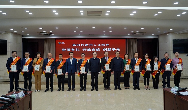 11月25日下午,衢州市舉行新時(shí)代衢州人文精神代言人聘書頒發(fā)儀式,并召開(kāi)新時(shí)代衢州人文精神代言人座談會(huì)。會(huì)上,市委書記高屹為16位新時(shí)代衢州人文精神代言人頒發(fā)聘書。王榮董事長(zhǎng)出席受聘儀式,并參加座談。