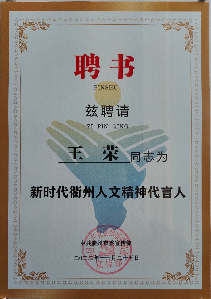 喜報(bào)!王榮董事長(zhǎng)被聘為新時(shí)代衢州人文精神代言人