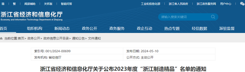 2024年5月10日,浙江省經濟和信息化廳公布2023年度“浙江制造精品”名單,科潤智控產品榜上有名。